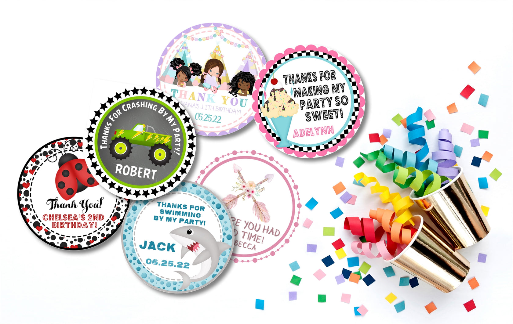 Custom invitations and stickers designed to make every party pop — from baby showers to retirements and everything in between.