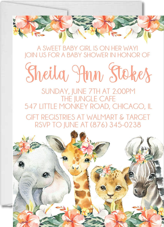 Girls Tropical Safari Animals Baby Shower Invitations - Digital File Only is backordered and will ship as soon as it is back in stock.
