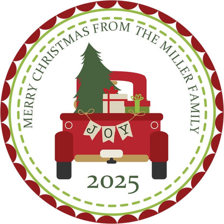 Vintage Red Truck Christmas Stickers – Personalized Holiday Favor Labels