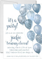 These sweet 16 birthday party invitations feature fancy blue balloons and are personalized with your event details in two matching blue font styles.