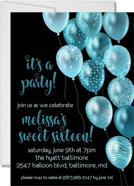 From $15.00Unit price /UnavailableTurquoise And Black Balloon Sweet 16 Party Invitations