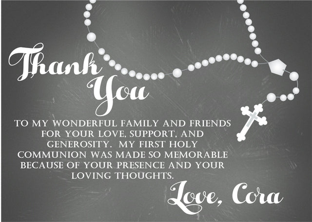 Black And White First Communion Thank You Cards