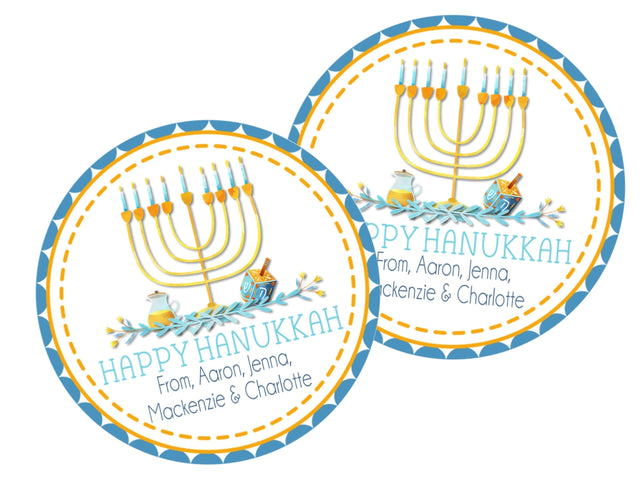 Blue And Gold Elegant Hanukkah Stickers - 2 Inch - Quantity 24 is backordered and will ship as soon as it is back in stock.
