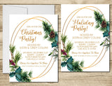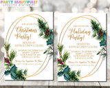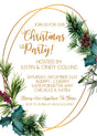 Green Pine & Gold Christmas Or Holiday Party Invitations