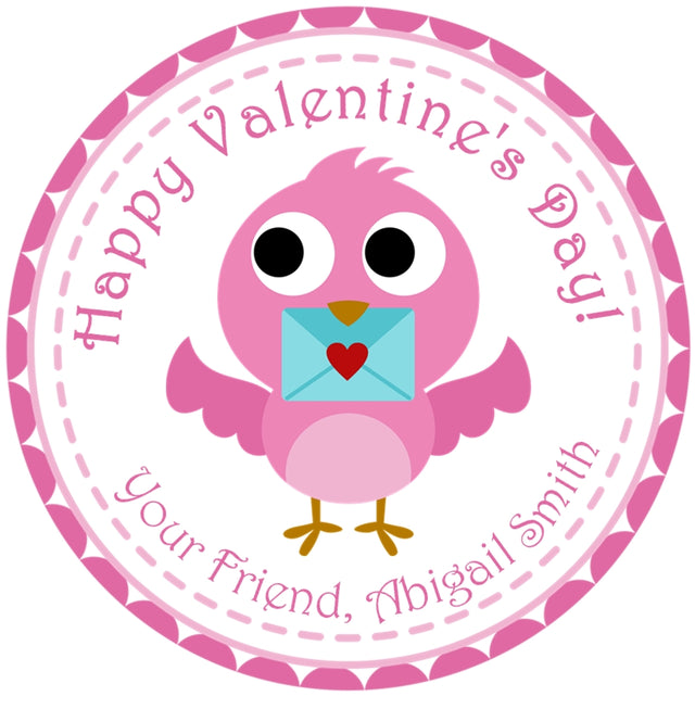 Pink Bird Valentine Stickers – Cute Love Letter Favor Labels for Kids - 2 Inch - Quantity 24 is backordered and will ship as soon as it is back in stock.
