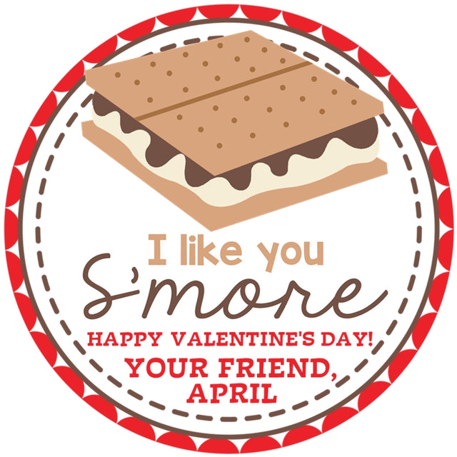 I Like You S’More Valentine Stickers – Personalized Kids Classroom Favor Labels - 2 Inch - Quantity 24 is backordered and will ship as soon as it is back in stock.