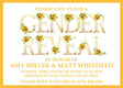 These cheerful gender reveal invitations feature a pretty sunflower themed design with special gold lettering decorated with little sunflowers against a white background and a bright yellow border around the cards. Invitation cards are designed with your very special event details in a matching yellow font style.