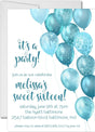 These sweet 16 birthday party invitations feature turquoise balloons and are personalized with your event details in two matching turquoise font styles.